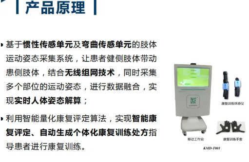 远程康复训练与评估系统(KMD-T001)就成为了患者的得力助手。该系统基于惯性传感单元及弯曲传感单元构建了肢体运动姿态采集系统,再结合无线组网技术,能同时采集多个部位的运动姿......
