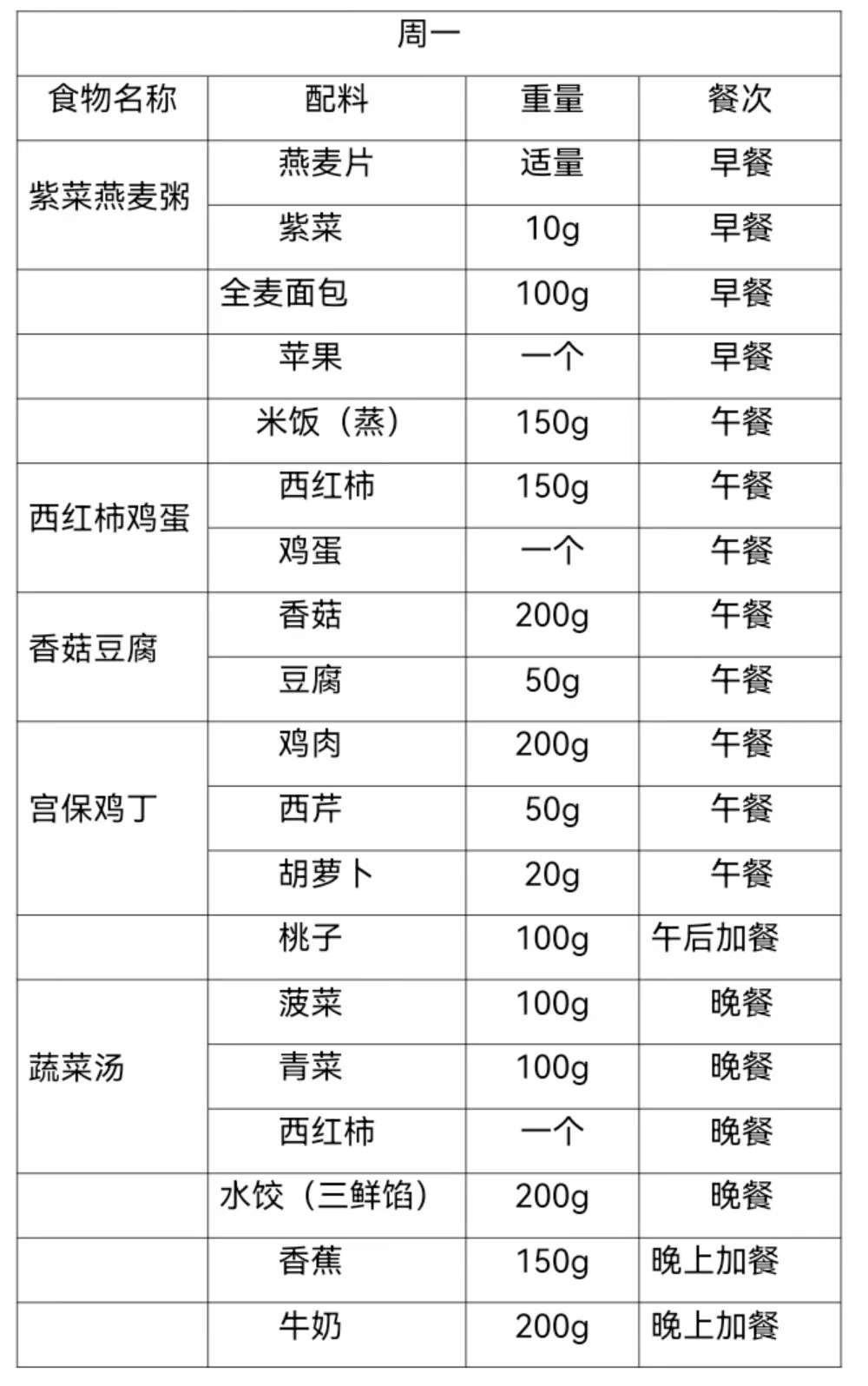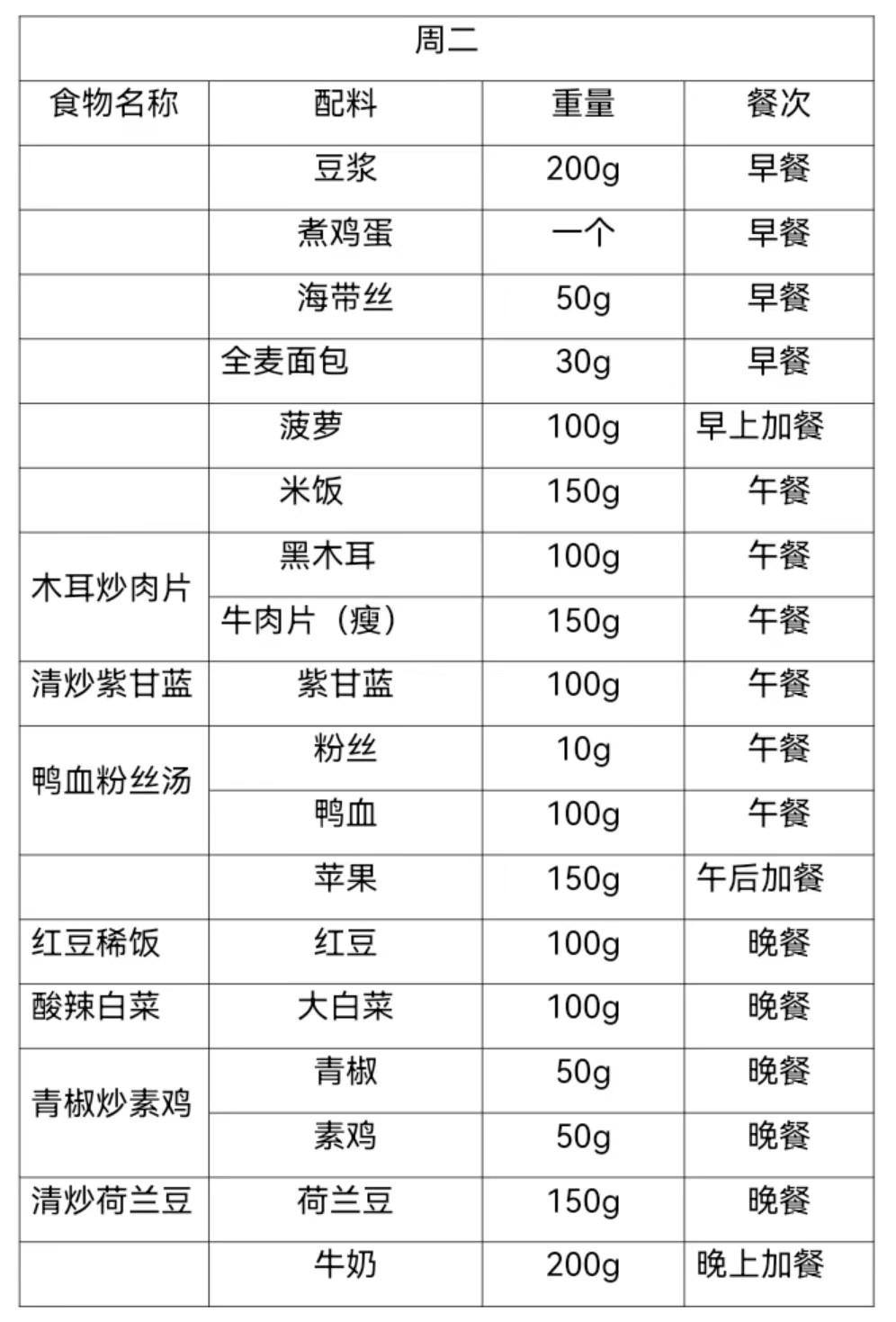 再生障碍性贫血患者7日营养膳食食谱